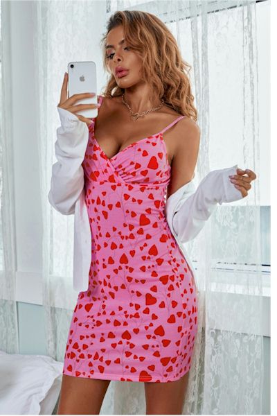 Strap Up for Style: Turn Heads in our Eye-Catching Hot Pink Hearts Mini Dress!