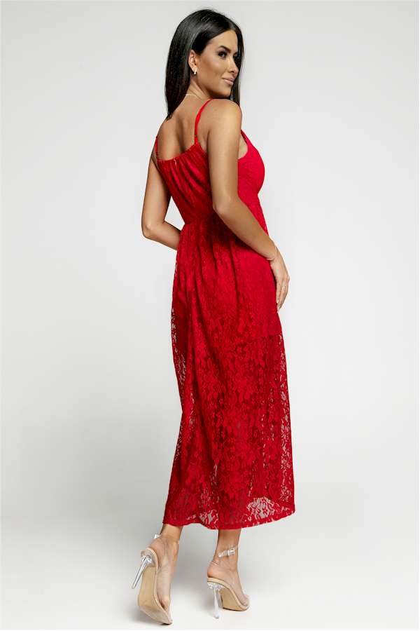 Effortless Elegance Red Lace V Neck Maxi Dress